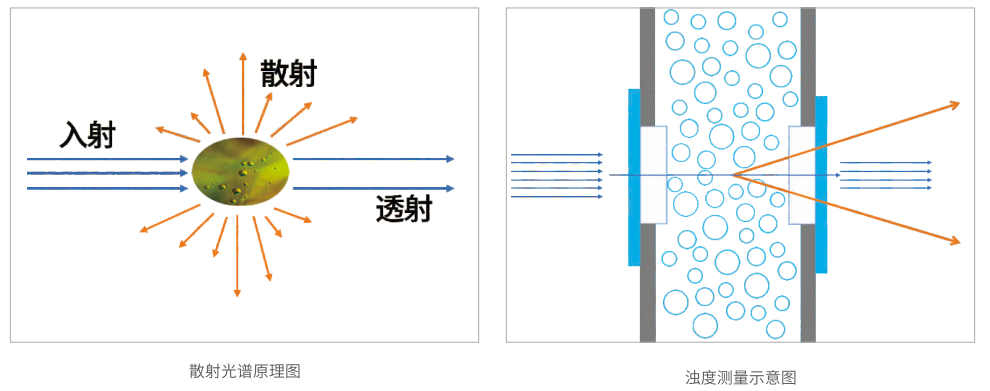 光的散射原理:散射是指光通過不均勻介質(zhì)時,一部分光偏離原方向傳播的現(xiàn)象,偏離原方向的光稱為散射光,常用來測量濁度。